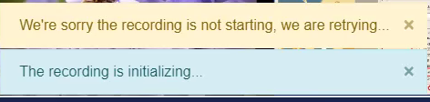 4. If the recording has not started within 30 seconds, you will receive a notification that the process is taking longer than expected. The system continues to alert you every 30 seconds, until the recording starts.