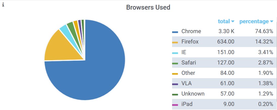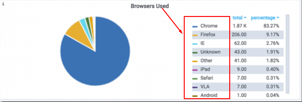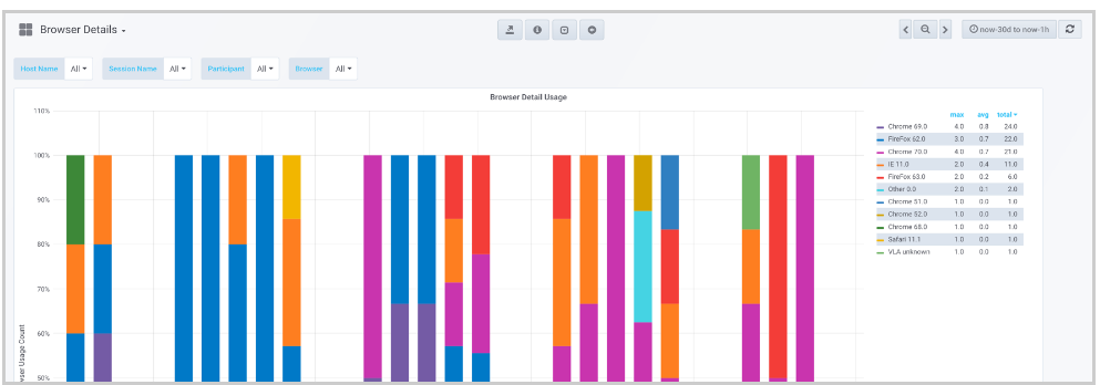 Note: This Dashboard shows very detailed versions of each browser used on a daily basis. The Max, Avg, and Total usage for each browser can be seen in the Legend.