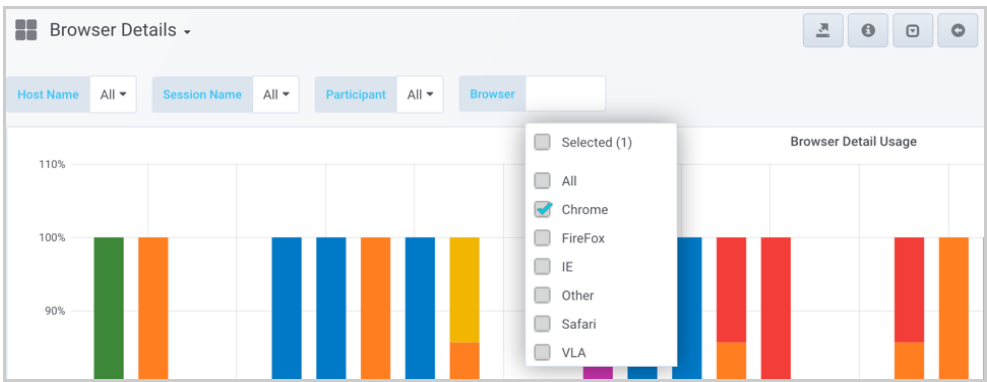 Additionally, you can apply the "Browser" filter on this dashboard. For example, to see only Chrome browsers, select "Chrome" from the "Browser" filter.