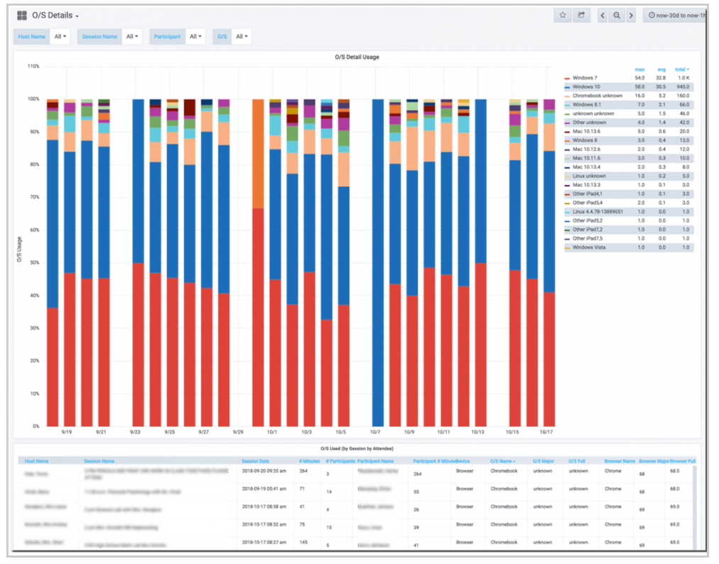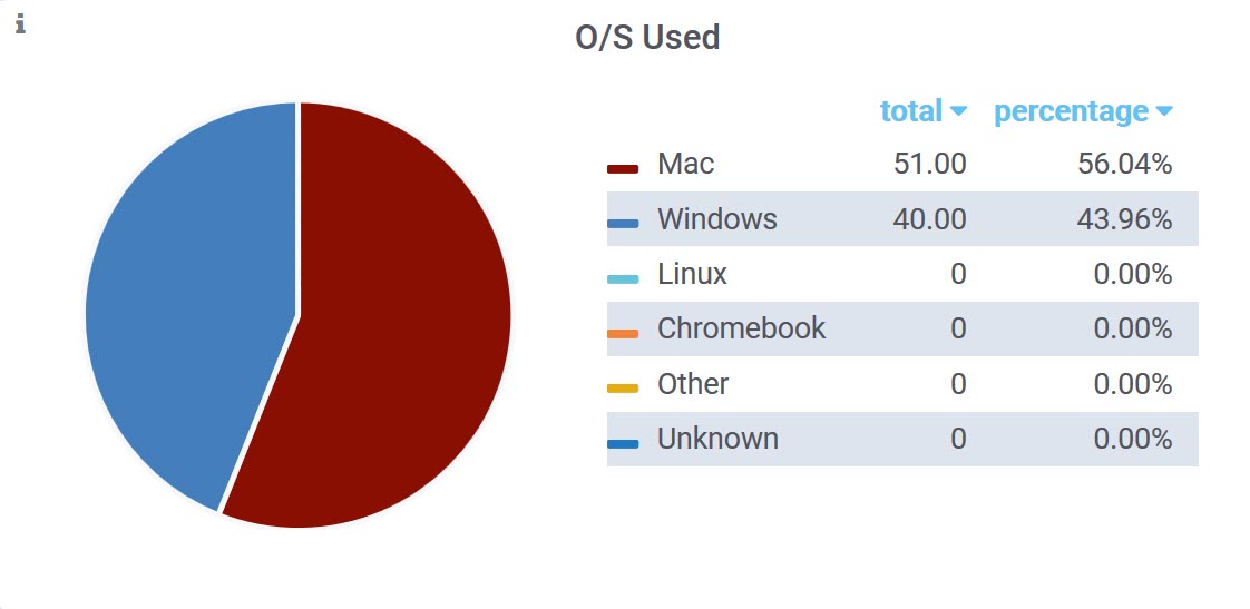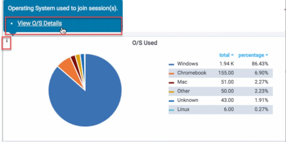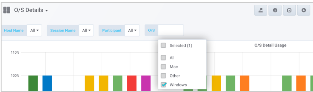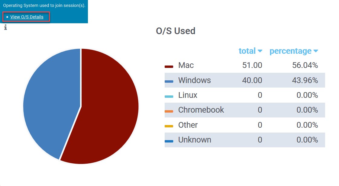 The O/S Used panel displays the Operating System used by participants who have joined Sessions.