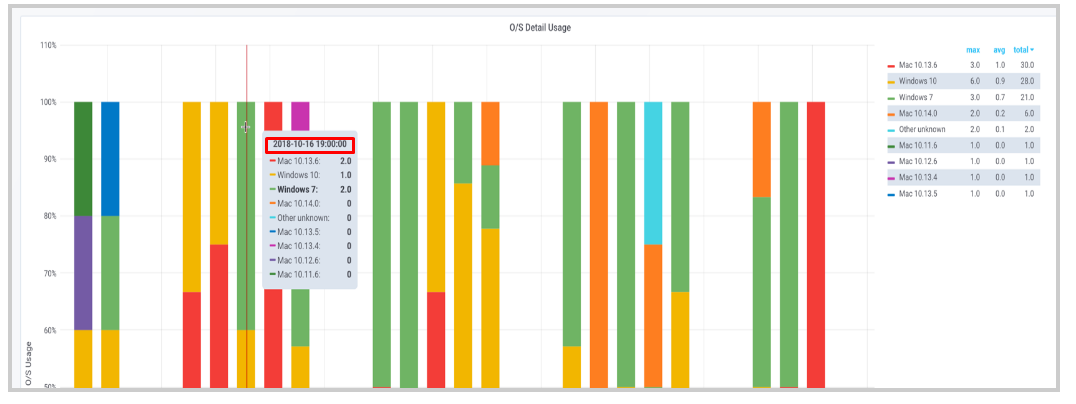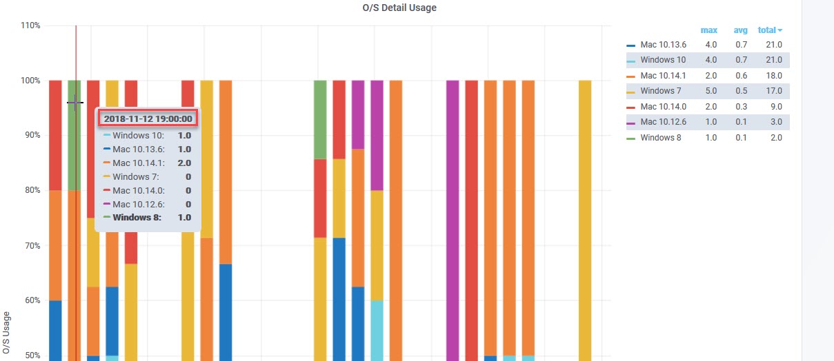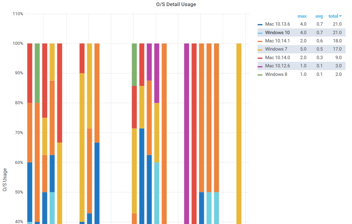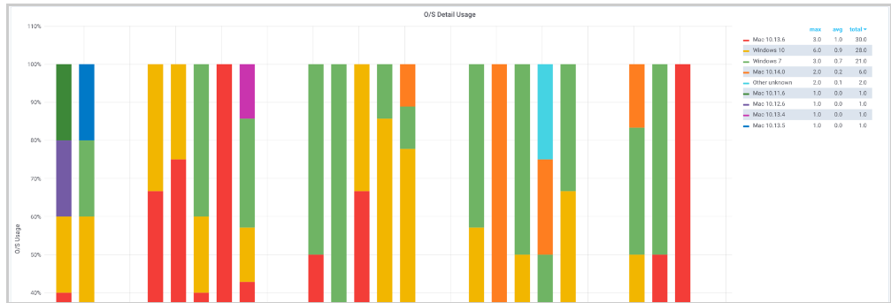 Note: This dashboard shows very detailed versions of each Device and/or O/S that was used. The graph itself shows the numbers on a daily basis, and the totals can be seen in the Legend.