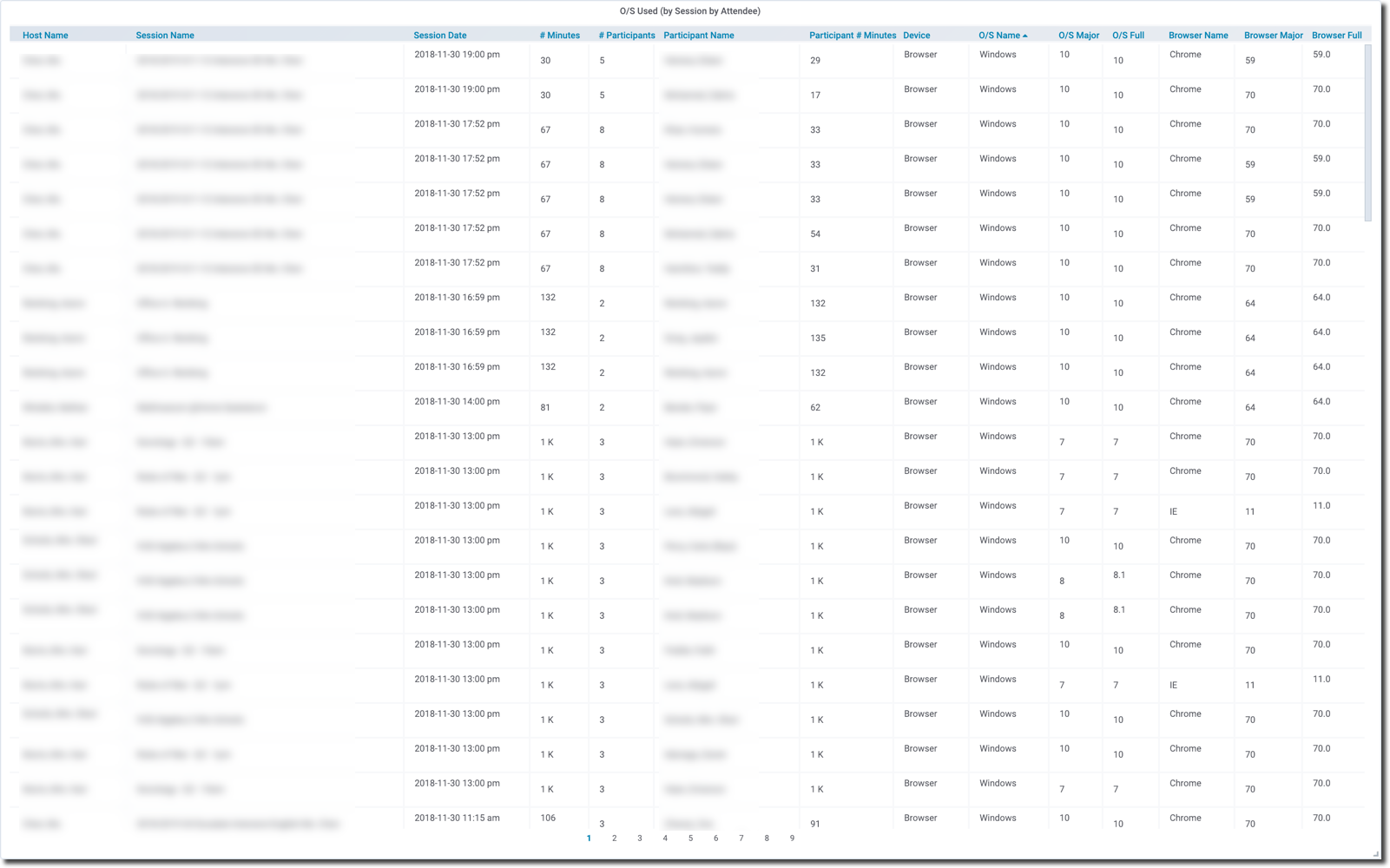 Included on this drill-down dashboard, is a table at the bottom that shows the Participant/Attendees for each Session along with their O/S detail information.