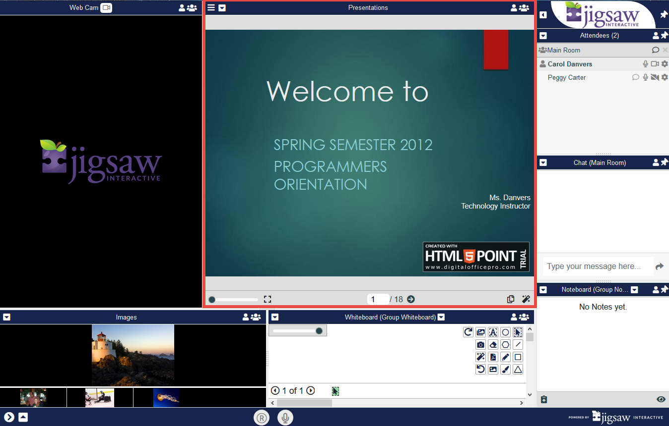 When working with Presentations, the Host or Co-Host can copy a screen from the presentation to the Whiteboard as an image. This will allow attendees more options to collaborate.