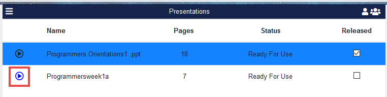 Note: To release a Presentation for attendees to view on their own, click the box under the Released column.
