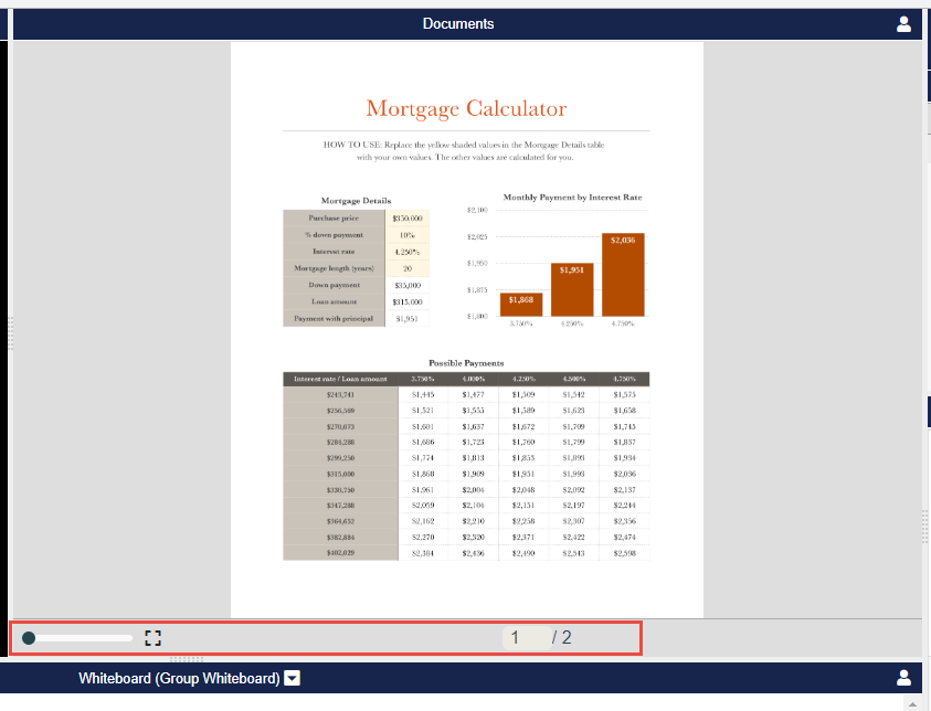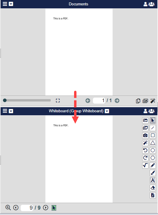 When working with Documents, the Host or Co-Host can copy a page from the document to the Whiteboard to use as the background. This will allow attendees more options to collaborate.