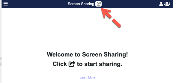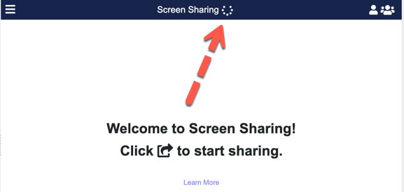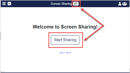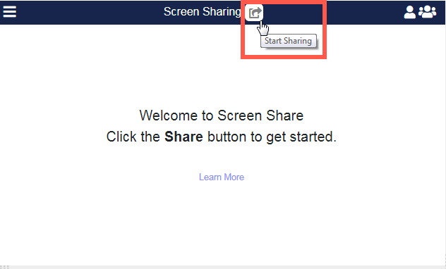 4. Only attendees who have been invited to share their screen will see the white "Screen Sharing" button. They will also see the "Welcome to Screen Share" message. Click "Share" and then follow your browser's prompts for sharing.