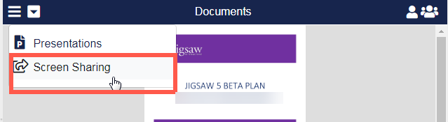 If you need to switch between Browser Sharing and Jigsaw App Sharing, you can click the down arrow in Pane 2 while the Screen Sharing is enabled and choose 'Select Sharing Options'.