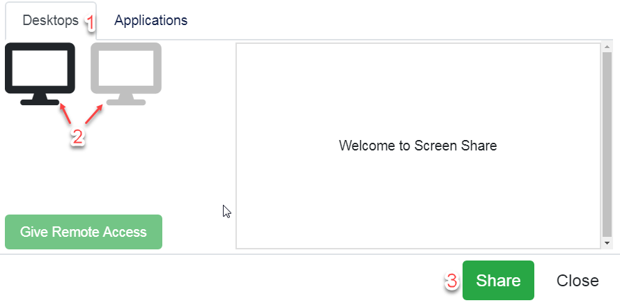 Note: Multiple Screen Share is an add on feature that must be requested by your company administrator. Further details will be provided upon request by your Sales Representative.