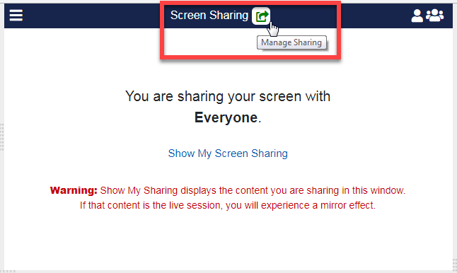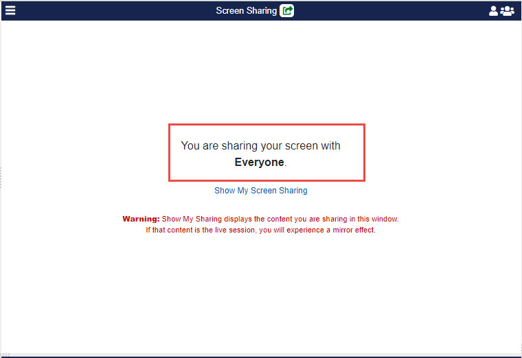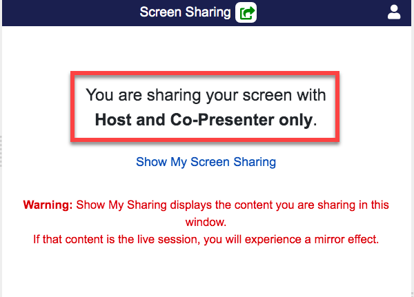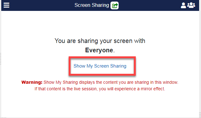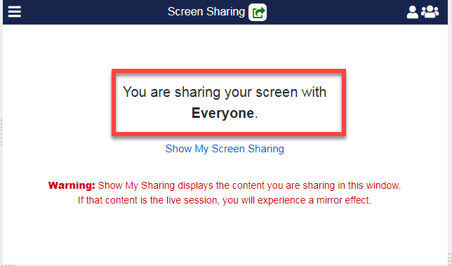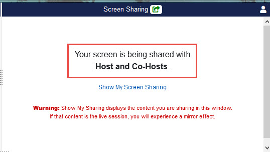Note: If the sharer decides to click "Show My Screen Sharing, they will then see what is being shared.