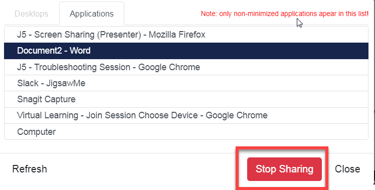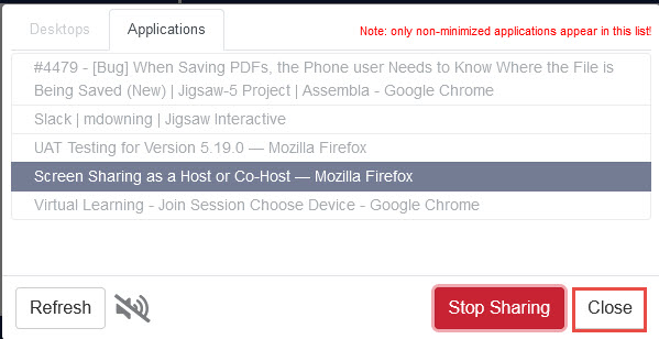 6. To Stop Sharing, Click the Stop Sharing button in the Pane 2 Title Pane.