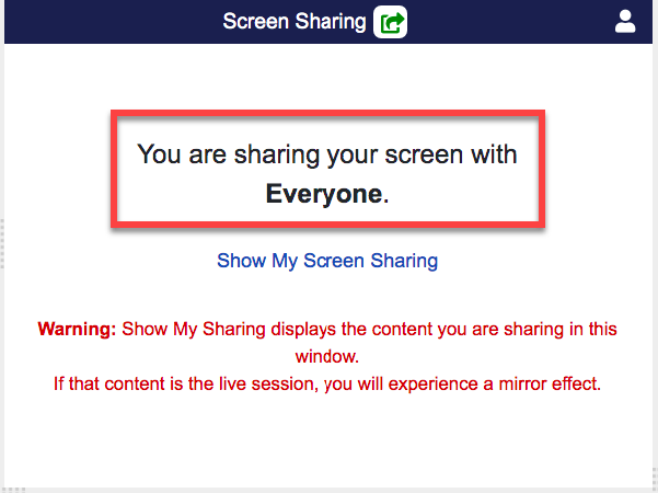 Note: If the person sharing decides to click "Show My Screen Sharing, they will then see what is being shared.