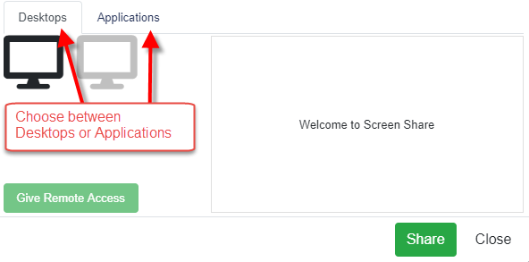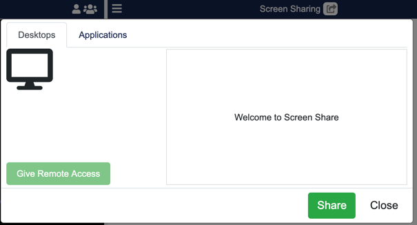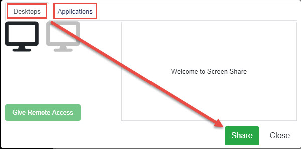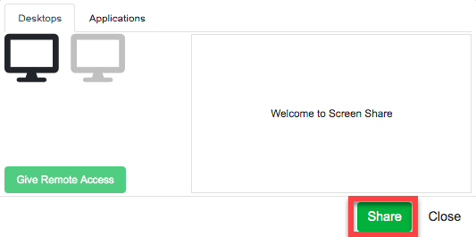 2. The attendee will need to share their desktop by clicking the green "Share" button.