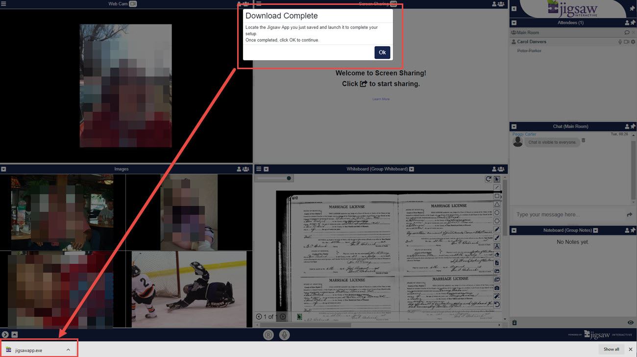 We recommend installing the Jigsaw App prior to joining your session. This will save time and prepare for your session. Go to the Test My Computer screen before your session located under the Profile icon. This is the best practice for installing the Jigsaw App. Visit How to Install the Jigsaw App.