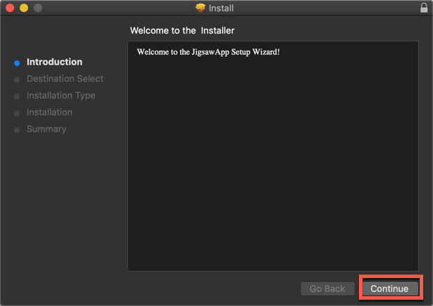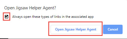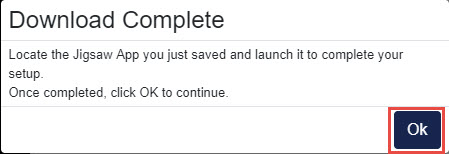 3. Next, click the bullet next Jigsaw App. You will need to have the Jigsaw App installed to use this option. Then click Continue.