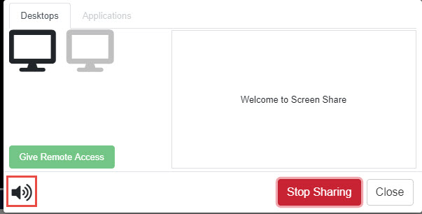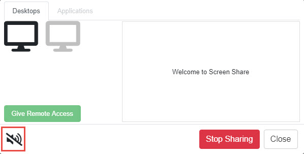 Once audio is selected, a Mute/Unmute option will be available at the bottom of the Welcome to Screen Share window