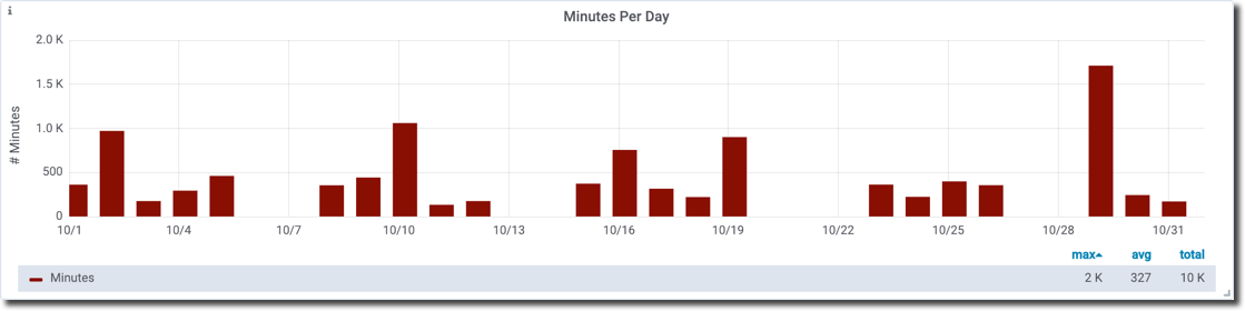 The Minutes Per Day panel displays the number of Minutes spent in all Sessions for all Attendees for each day.