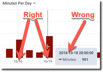 Note: The dates at the bottom of the chart are correct! However, if you hover over a specific bar in the chart, the date displayed in the pop-up, will be shifted by 1 day. So, please use the dates at the bottom of the chart instead of the dates in the pop-up.