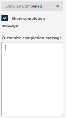 3. Next, move to the Show on Completed section. By checking the "Show completed message at the end", the message entered in the Completed Html box will be presented after an Assessment has been completed.