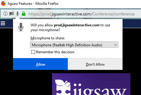 3. Click the small camera or mic icon upper left-hand corner of the browser window where Jigsaw is visible.