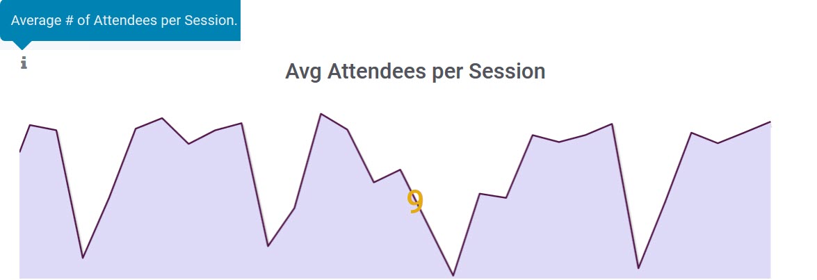 - Then, the Avg Attendees per Session panel will show the average number of people who attended, the specified session, during the specified time period.