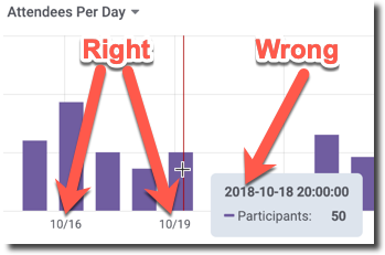 Each bar on the chart represents the number of Attendees who attended Sessions held per day. The y-axis (numbers up the left side) show the number of Attendees