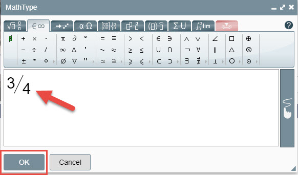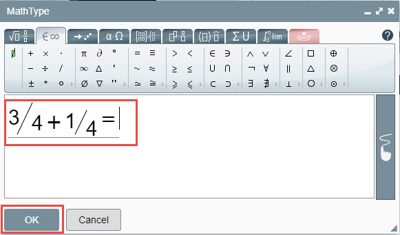 4. When finished, click OK to transfer the work from the MathType to the Document or Presentation.