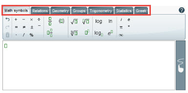 3. The user will locate and click on the math signs, symbols, etc. to insert them in the MathType. For any equation/symbol that needs a number, simply click in the box that appears in the editing screen and type the number. It will replace the box.