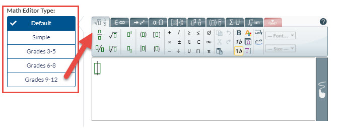 1. When creating or editing a session, go to Screen 2: Settings and scroll to the bottom to view the MathEditor Types.