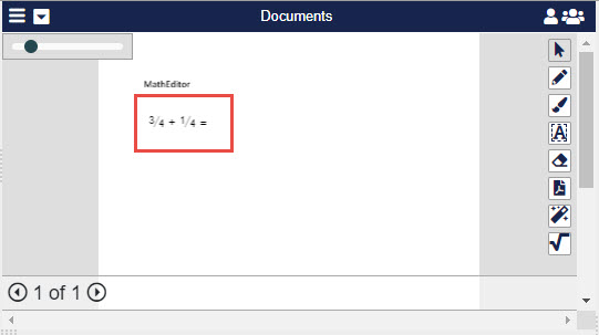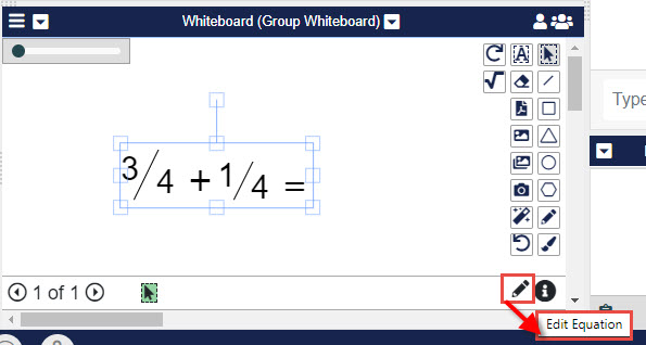 To edit a Math Equation or Statement entered on a Document, Presentation, or Whiteboard, double-click it or select it and click the Pencil in the bottom right corner of the Pane where it is located. This will open the MathType screen.