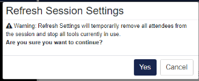 There are times when a Host or Co-Host needs to make changes to the Details or Settings of a session while the session is open.  To apply these changes to the sessions immediately while users are in a session, click Refresh Session Settings located in the Global Attendees Options menu within the session.