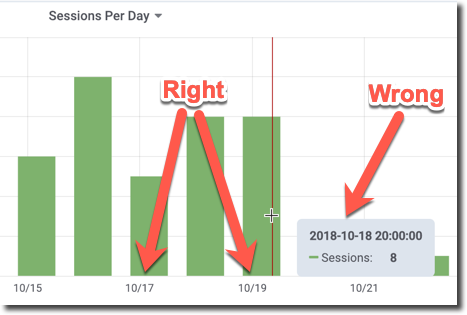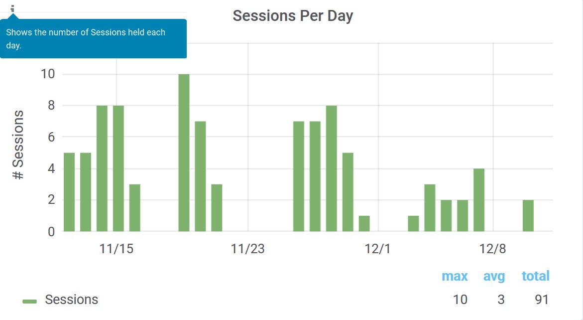Each bar on the chart represents the number of Sessions held per day. The y-axis (numbers up the left side) show the number of Sessions.