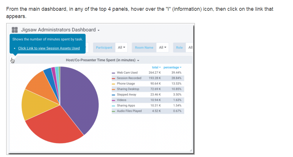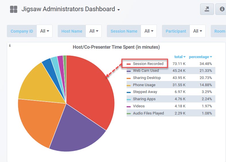 Simply, click once on "Session Recorded" and it will turn grey and the data will be removed from the pie chart (see below). Now, the smaller pie slices have more room to be displayed. Note that this only affects which pie slices are displayed.