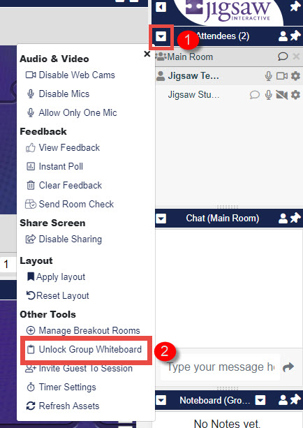 2. Click Unlock Group Whiteboard