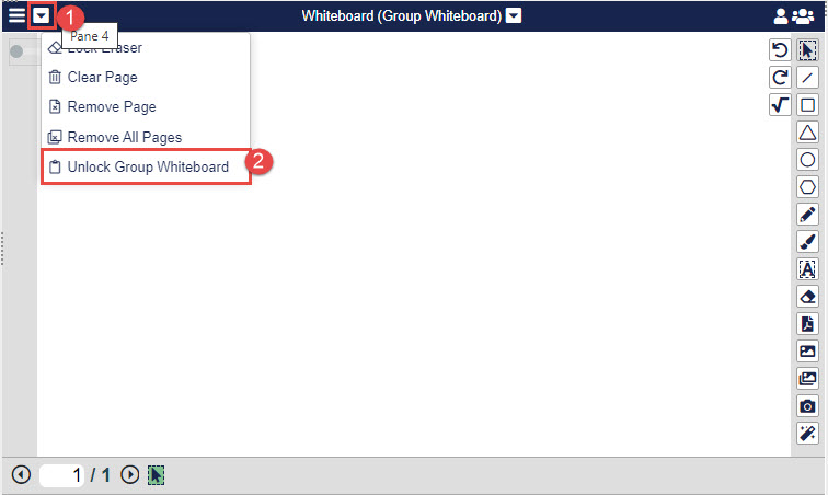1. Click the down arrow on the Group Whiteboard (Pane 4) and